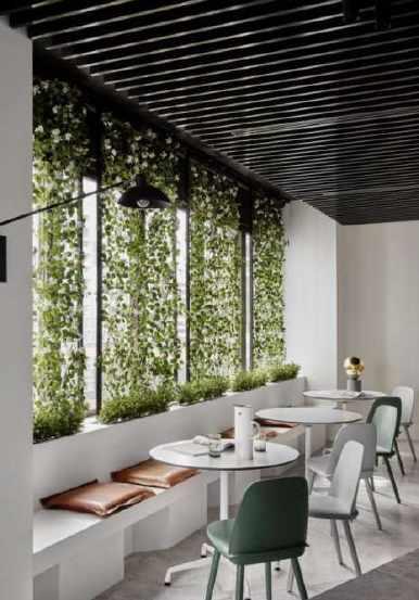 Moderno y minimalista, con acentuaciones en color y texturas, propio de la marca, para los remates visuales como identidad de tienda. Frescura y naturalez con las intervenciones paisajistas. Lienzos blancos vs colores y texturas.