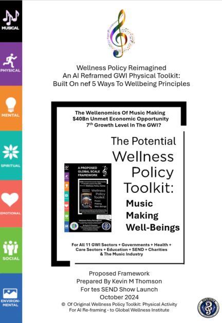 Inspired by the Global Wellness Institute's Physical Activity Toolkit, the "Wellness Policy Toolkit: Music Making Well-Beings" offers a revolutionary approach to integrating music making into wellness strategies. Kevin M. Thomson, founder of the Dysmusia.Foundation, provides a comprehensive guide for educators, policymakers, and wellness professionals. This toolkit leverages cutting-edge neuroscience and social neuroscience to showcase music's profound impact on mental health, cognitive development, and social connections. With practical applications and strategic insights, this toolkit is designed to unlock a $4 billion economic opportunity and create a $1 trillion impact on global well-being. Transform your approach to wellness with the power of music making.