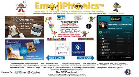 Together with the Dynamic Dozen books and research Kevin has developed over the last decade and more like EmojiPhonics, Kevin hopes to ignite the SEND and non-SEND worlds to re-assess the impact of Guido D’Arezzo’s revolutionary approach both over the last Millennium and into the next millennium. This includes the future of music innovation with changes like ChatGPT, Co-Pilot, and Samsung AR technology with a whole new look at Music Making Well-Tech to create a new music-making culture and climate for everyone, everywhere, of every age and ability.