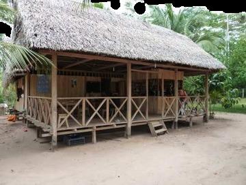 La cubierta esta conformada por vibras vegetales, y estás están sostenido por una estructura de madera. Buen aislante térmico y protege el interior de las lluvias. Hojas de Shapaja
