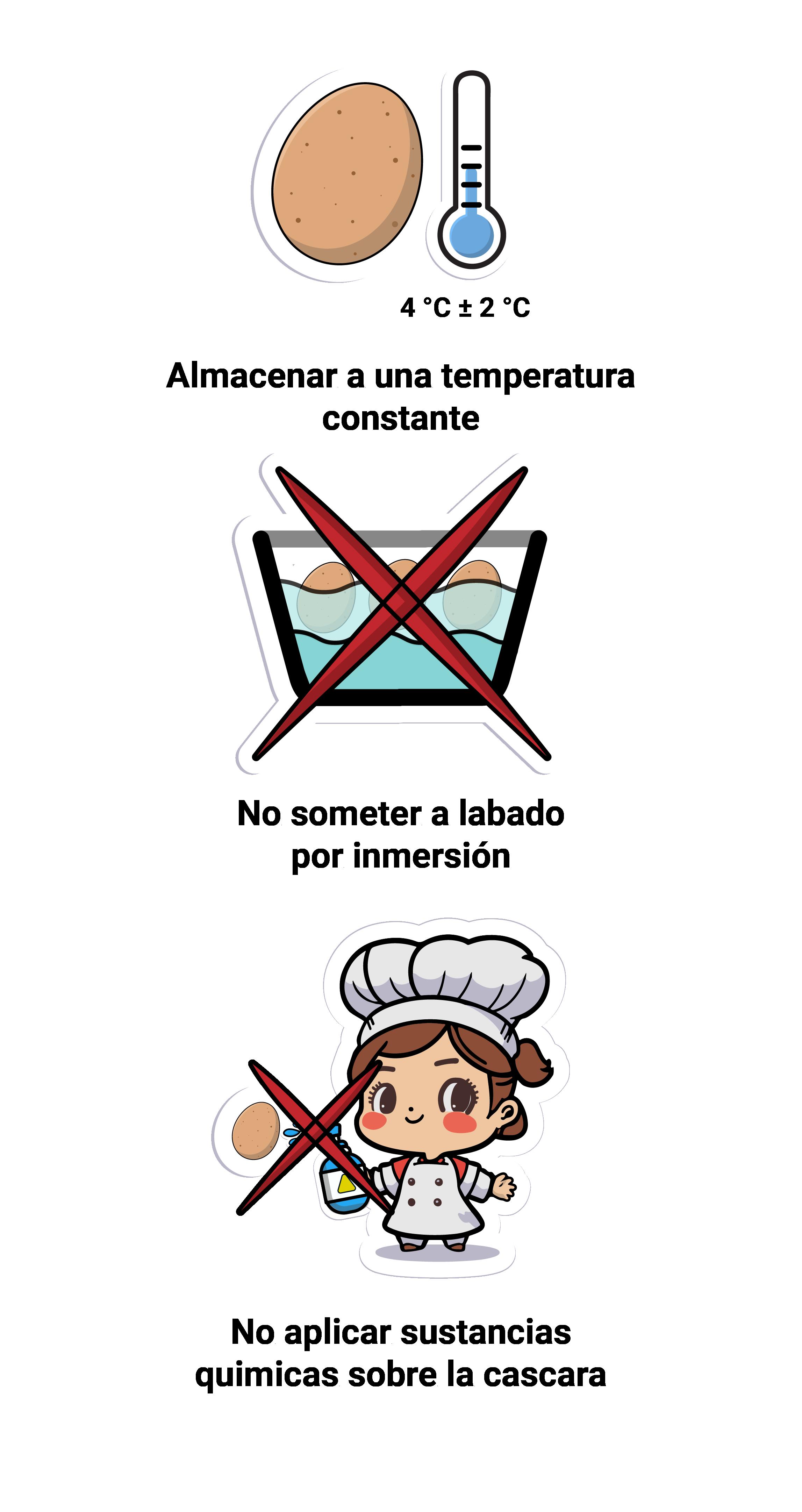Al recibir los huevos en el establecimiento gastronómico, se debe verificar que estos se encuentren íntegros, sin grietas o fisuras evidentes, limpios (sin presencia de sangre, excremento de aves, restos de huevo o cualquier otra suciedad) y color característico según la procedencia.