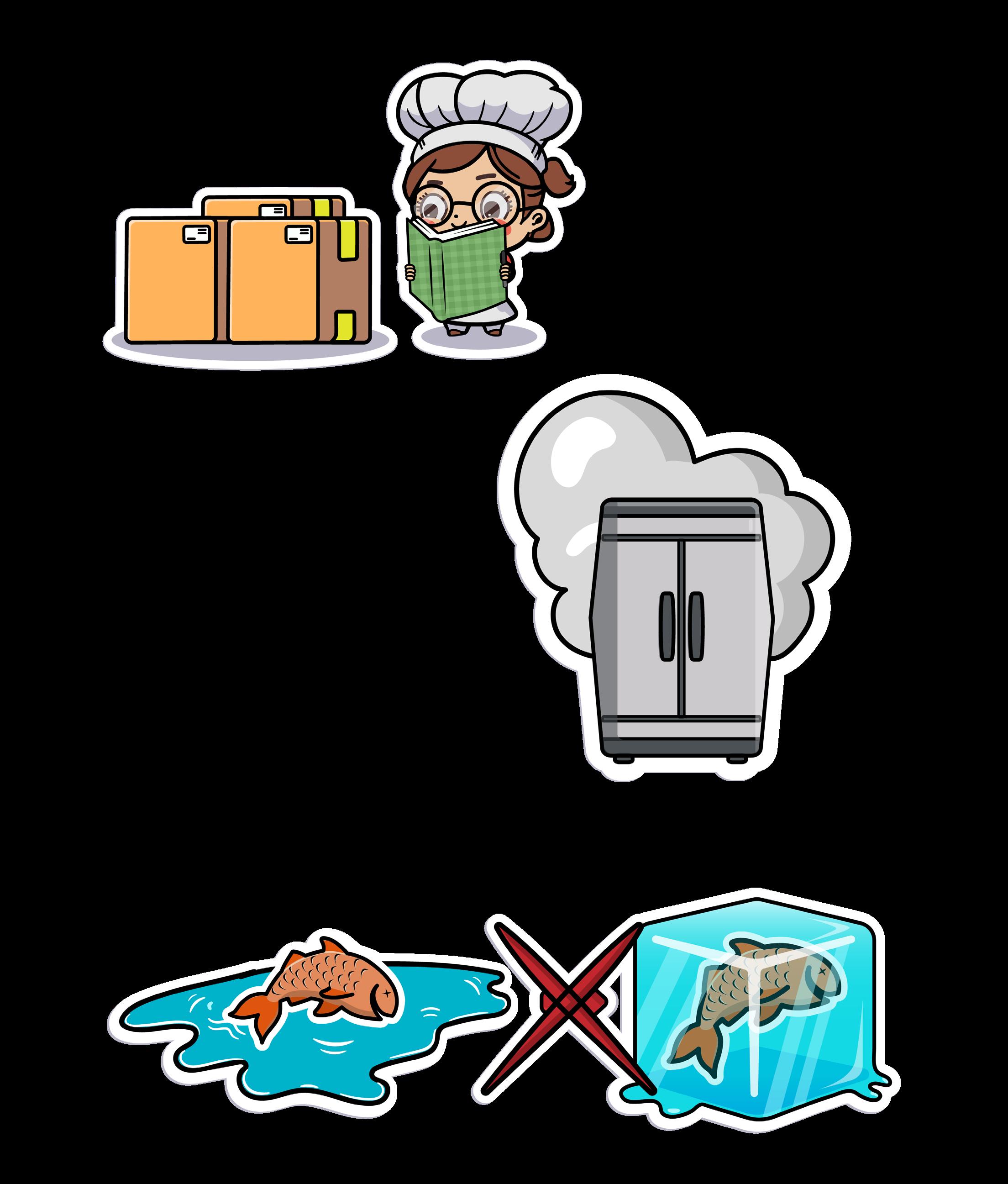 Los pescados y mariscos deben mantenerse congelados a temperatura inferior a -18 °C), o refrigerados hasta máximo 2 °C.