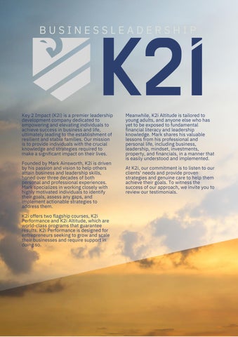 Key 2 Impact (K2i) is a premier leadership development company that aims to empower individuals for success in both their personal and professional lives. The company is led by founder Mark Ainsworth, who brings extensive experience in business and leadership