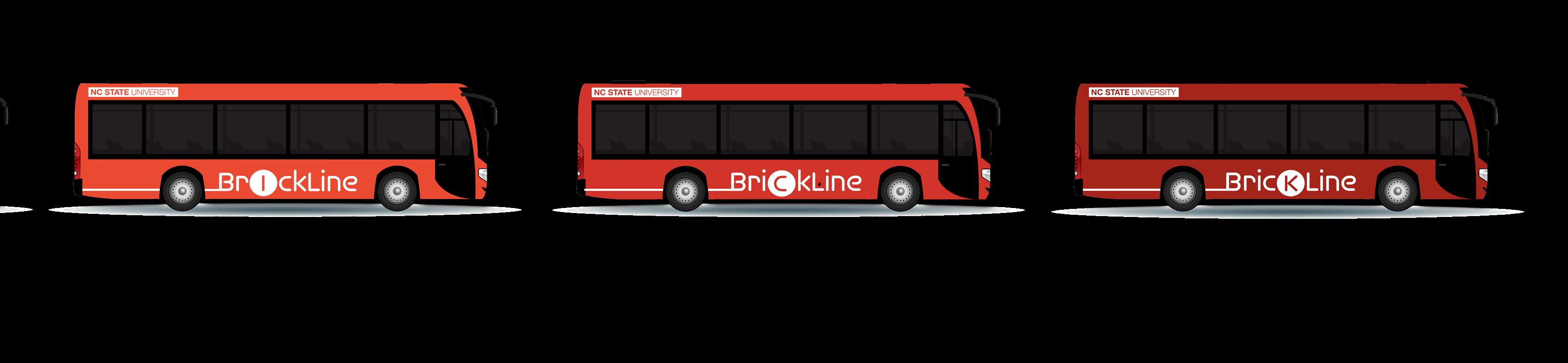 With the Brickline changing the NC State transportation system, the bus’ exterior is an important part of instilling this new brand. Since this new system incorporates 5 different routes, each bus would be paired with their respective color of the route from orange to red. This allows for users to easily identify the bus they need to take by the color of the route.