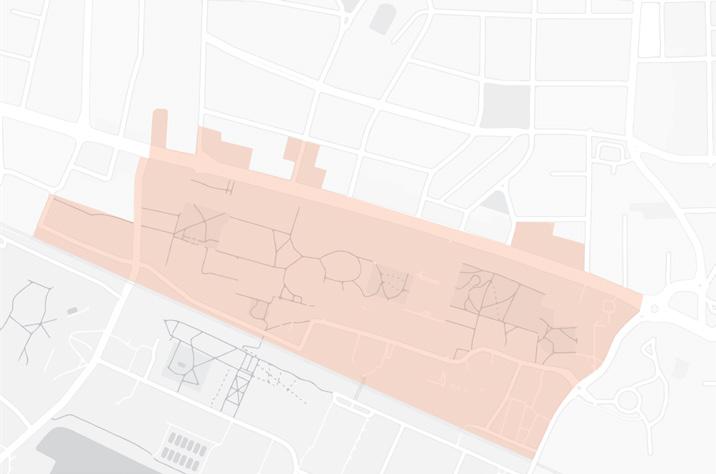 Each route display on the interactive kiosk has the section of the specific Brickline route along with its bus stops and a few important street names placed on a simplified campus map. The map is made grayscale to bring out the orange to red gradient of the routes and the low opacity orange of the campus zones. Additionally, each route has its bus stops placed on the route outline with the correct orientation.