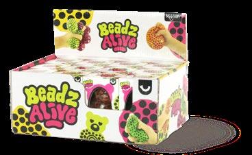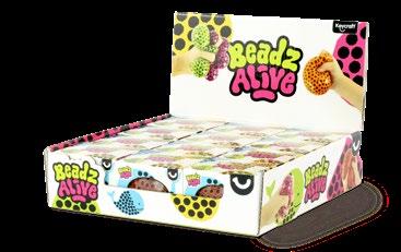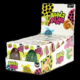 Unleash the fun in your store with Beadz Alive! Vibrant colours and mesmerising black beads breathe life into playful shapes - from giant squishy balls to slithering snakes. When squished, watch the beads glide and slip through your fingers for an almost alive sensation! Elevate the excitement with our compact, branded display stand, creating an enticing area that draws all customers in.