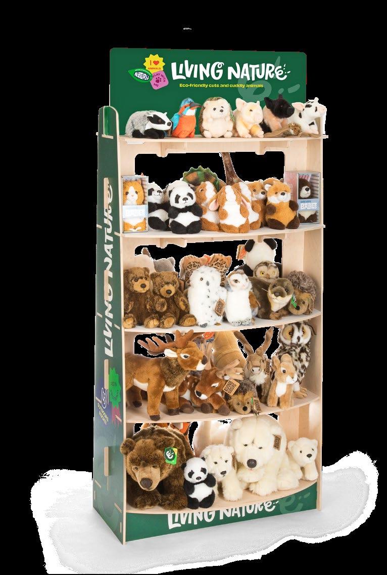 Welcome our latest addition: the Living Nature Round Display Stand! Tailored for our smaller Living Nature range, this stand is a budgetfriendly haven. Every item, one set price. With 24 shelves to showcase an extensive variety, it’s a delightful hub for your collection. We’ve added convenient pockets for collector’s books, guiding customers to discover their next favourite soft toy and enticing them to return.