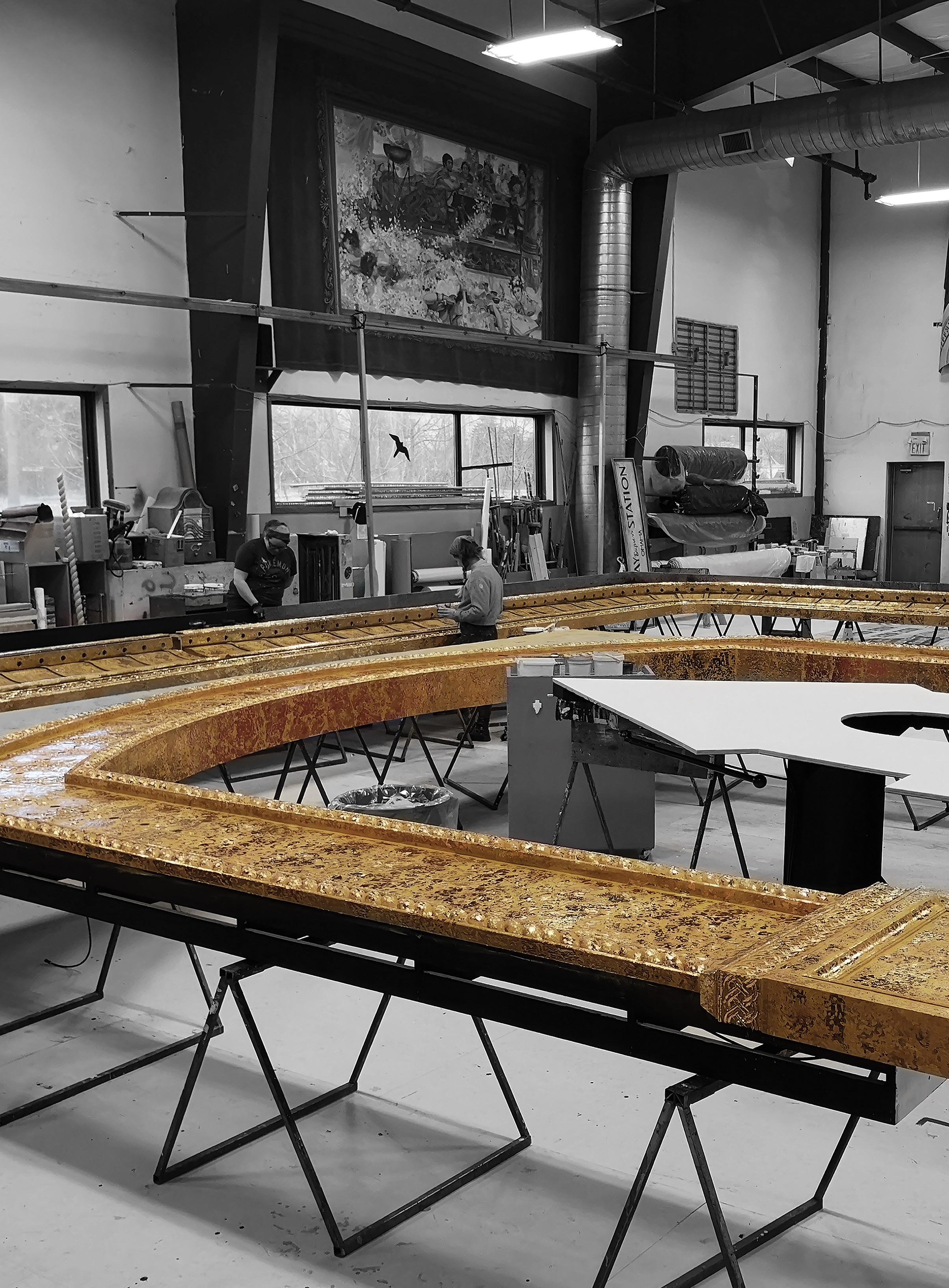 Scenic artists working on the set for Gypsy.