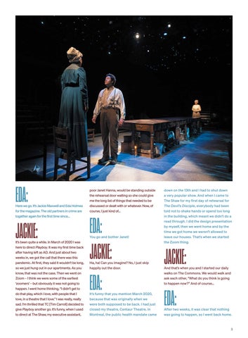 This is interesting for me – you were running a theatre, and, of course, obviously TC was and many others. You were all “pedal to the metal” just to try to keep working. Now, if you weren’t running a theatre, if you were a freelance artist –as I now am – it was fascinating. Well, it was horrible in one sense because I had four projects that were planned that just disappeared. But for many, many people it was the start of a long period of just – being at home. You and I kept in close touch, and I’m thrilled that we have this second chance to work together at The Shaw. I mean, I’m sure TC wasn’t thinking, “I must make sure that Jackie and Eda…”