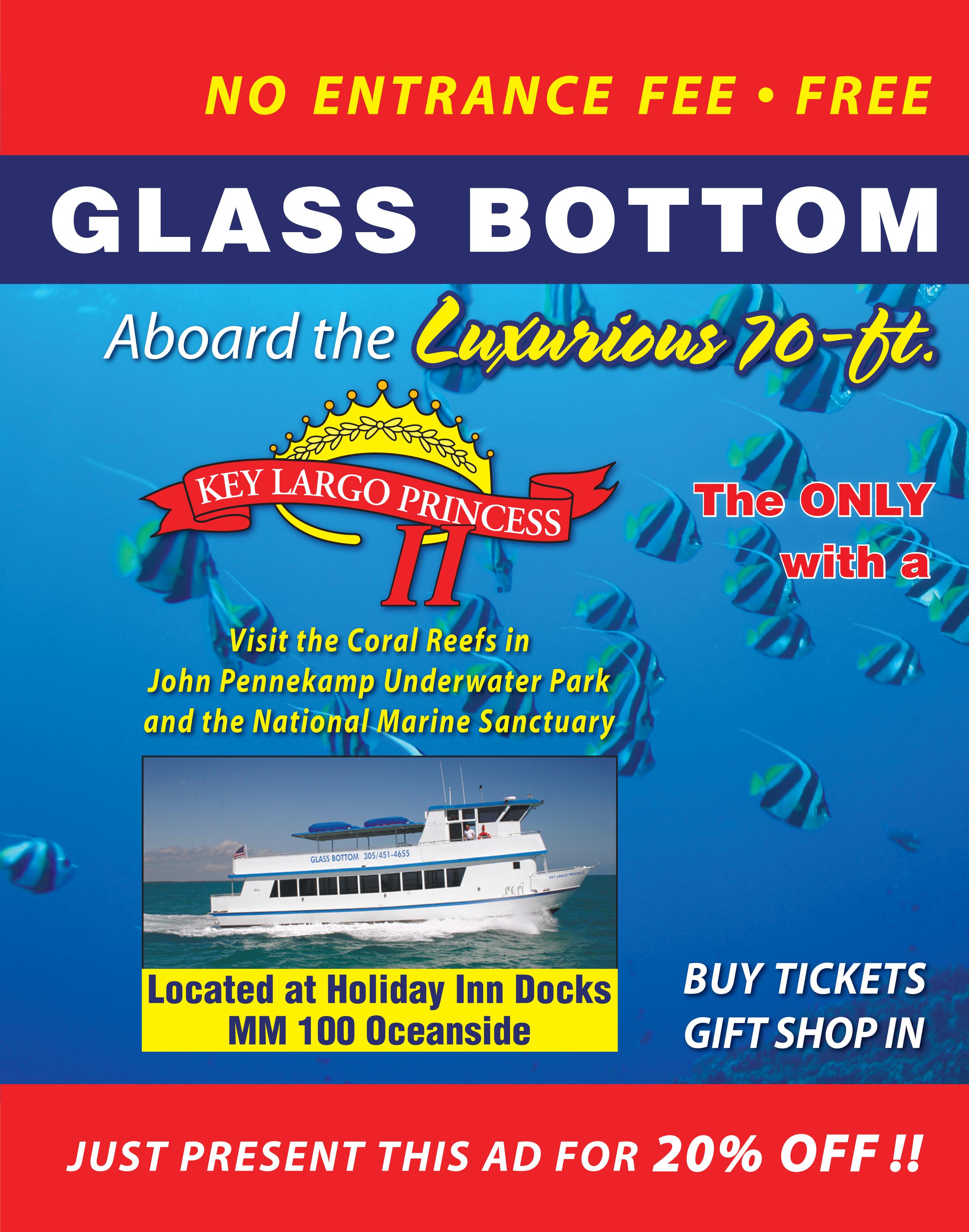For those looking for a tranquil tour of the coral reefs without submerging themselves in the water, hop aboard the M. V. Key Largo Princess for a cruise through the waters of the John Pennekamp Coral Reef State Park to view the exciting, beautiful underwater world of the Key Largo National Marine Sanctuary.
