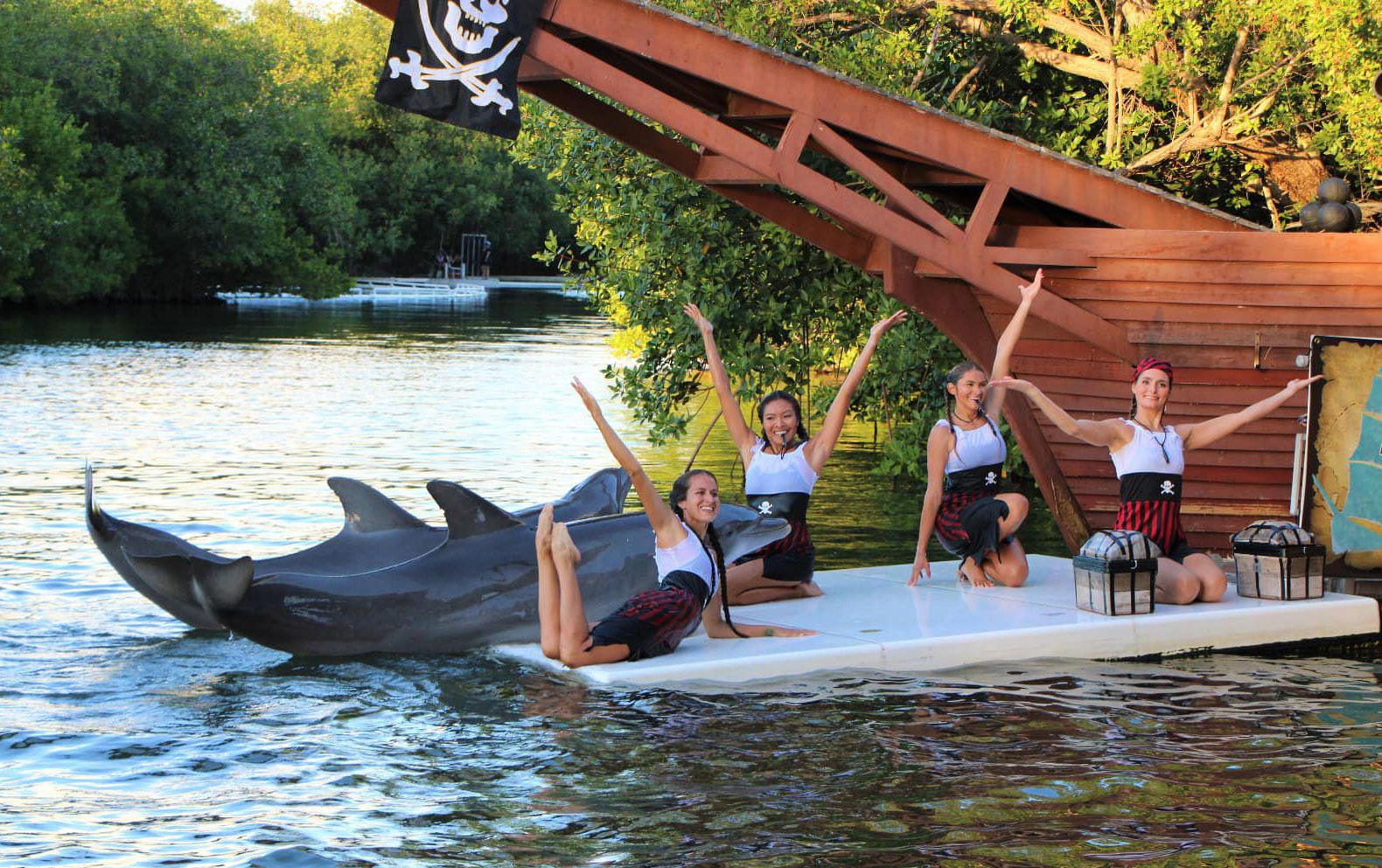 all ages will have ample opportunities to interact with the animals during their visit. Dolphin lovers will delight in the dolphin swim while snorkeling beside them. Included in this experience are dorsal tows, hugs, and kisses. Those a little less daring can do the shallow water dolphin swim, which entails interacting with the dolphins while standing in three to four feet of water. Want to join the fun but don’t want to get wet? Even land lovers can interact with the dolphins and get a few kisses too in the “Meet the Dolphin” program. Many encounters are also available with sea lions, nurse sharks, sea turtles, sting rays, crocodilians, and parrots!