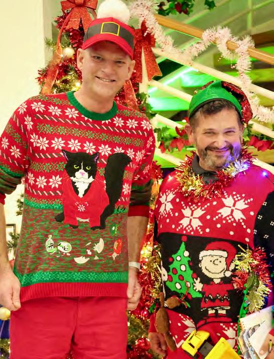 Ugly Sweater Contest Winners: First place went to Bradley (right) of Everglades Adventures and second place to Eric (left) of the Michael Rojewski Group.