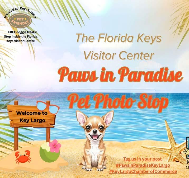 We’re excited to roll out Paws in Paradise at the Key Largo Chamber & Florida Keys Visitor Center! While we’ve always welcomed well-behaved, leashed pets, we’re making it official, and a little more fun. Stop by with your four-legged travel companion for a photo at our dedicated pet spot and a special treat, generously donated by Keys Kritters. Our staff will happily snap a picture, or you can share your own and tag us. Because in paradise, everyone’s welcome — two legs or four!