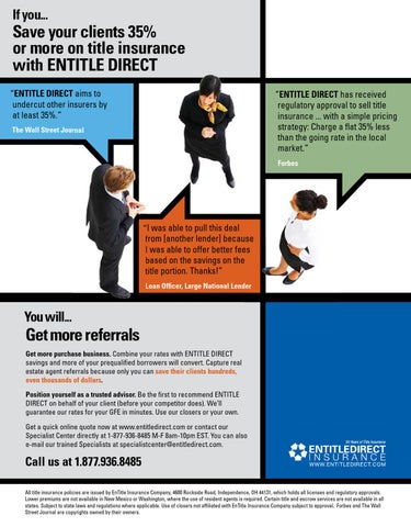 Save your clients 35% or more on title insurance with ENTITLE DIRECT