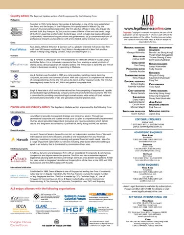 Asian Legal Business is available by subscription. Please call (852) 2815 5988 for details or visit www.legalbusinessonline.com