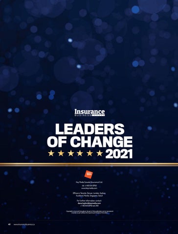 Key Media Canada (Insurance) Ltd. tel: +1 416 644 8740 www.keymedia.com Offices in Toronto, Denver, London, Sydney, Auckland, Manila, Singapore, Seoul For further information, contact: dane.taylor@keymedia.com + 1 416 644 8740 ext 249 Copyright is reserved throughout. No part of this publication can be reproduced in whole or part without the express permission of the editor.