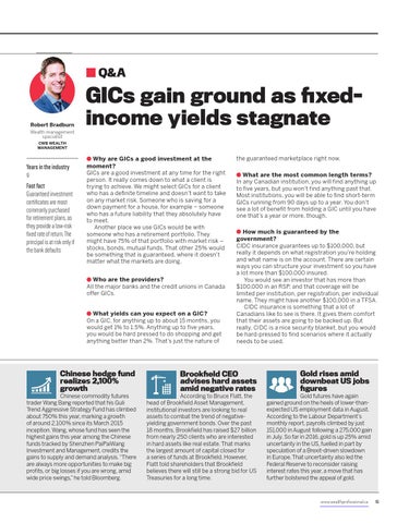 Years in the industry 9 Fast fact Guaranteed investment certificates are most commonly purchased for retirement plans, as they provide a low-risk fixed rate of return. The principal is at risk only if the bank defaults
