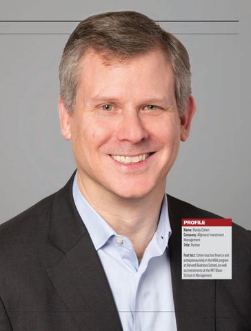 PROFILE Name: Randy Cohen Company: Alignvest Investment Management Title: Partner Fast fact: Cohen teaches finance and entrepreneurship in the MBA program at Harvard Business School, as well as investments at the MIT Sloan School of Management.