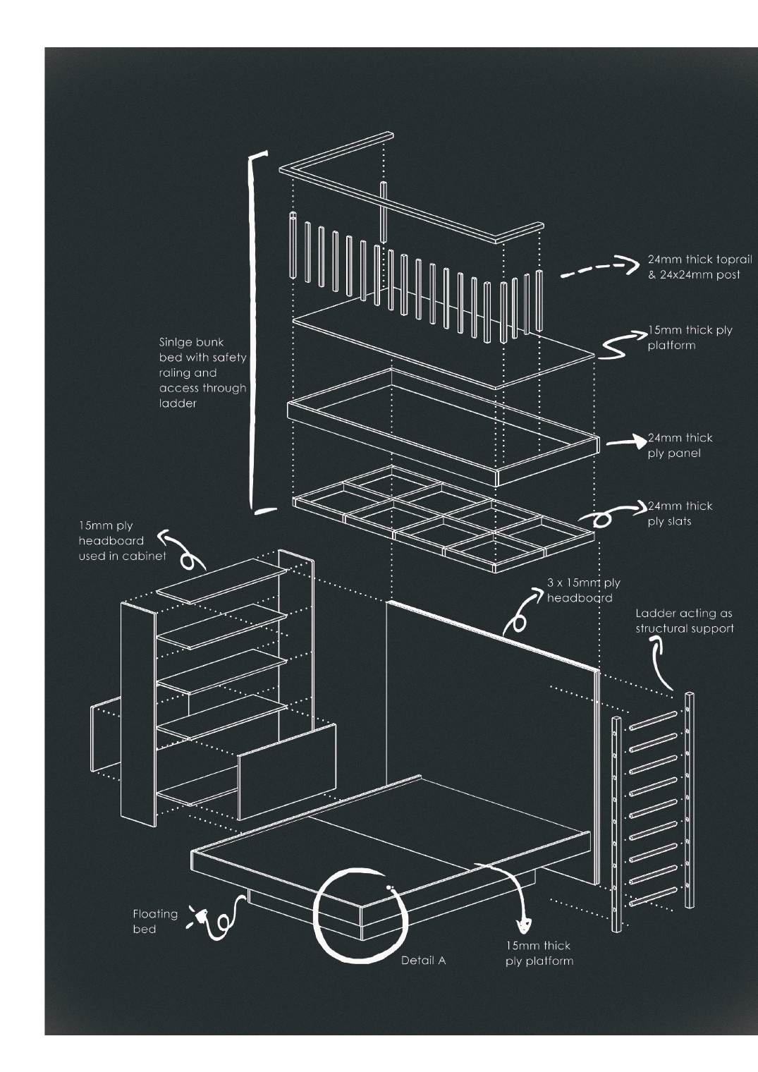 15mm thick ply platform Exploded View of Bed