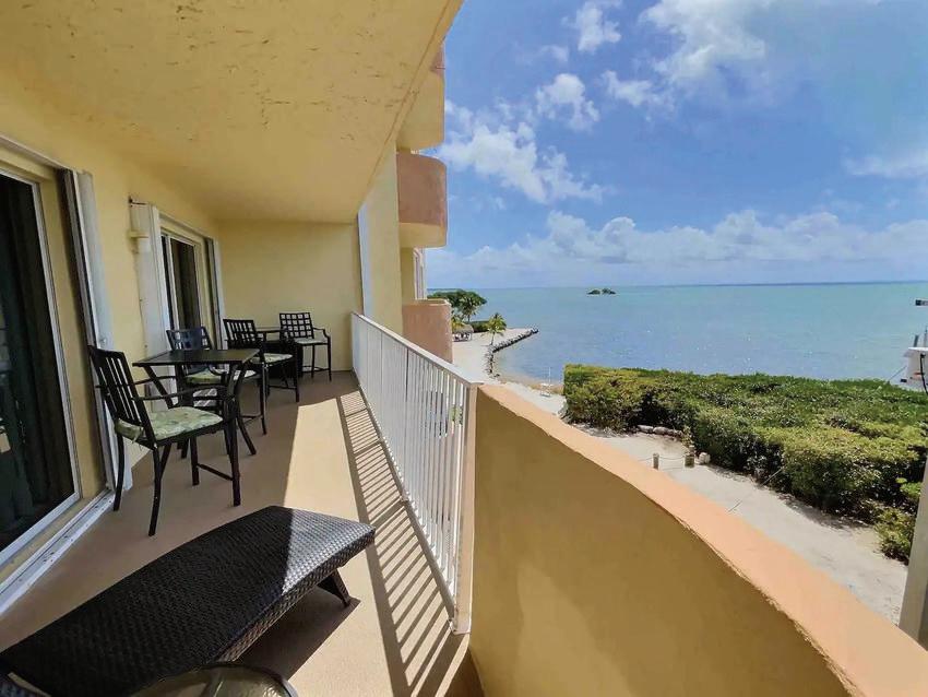 Direct sunset views! Watch the sun sink into Florida Bay from your porch, living room and bedroom! This open bayfront 2 bed/2 bath condo in Key Largo offers expansive open water views, a sandy beach, bayfront clubhouse, boat storage barn, dockage, pool, tennis courts and acres of shady tree-lined streets. Must see to appreciate the view!