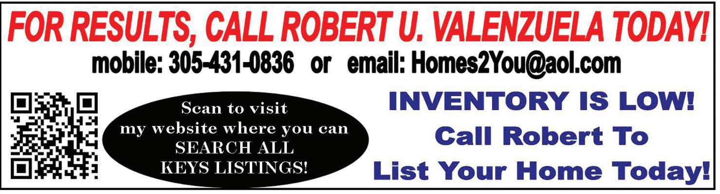 Island living at this 2BD/2BA home nestled on a doublefenced lot in Big Pine Key. Perfectly positioned along a scenic canal, this property offers Southern charm, with an inviting wraparound porch to enjoy the gentle breeze and picturesque views. $1,425,000 MLS:614066 Text RBKYYYZ to 52187