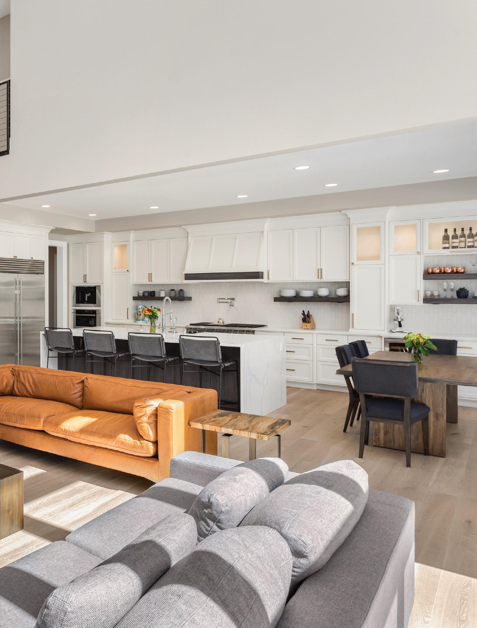 The right paint color will completely change the feel of your home, both inside and out. While neutrals are both attractive and safe, being a little daring with on-trend shades will really evoke the ‘wow.’ Try one of the many popular shades of gray, go bold with a jewel tone, or create a moody tone with a muted shade of blue. Also think outside the box when it comes to how you paint— for example, instead of bright white, paint the ceiling an eyepopping color; or create a patterned effect with painted stripes in a powder room. Go for a dramatic look in the kitchen by painting upper cabinets white and lower cabinets deep navy or charcoal.