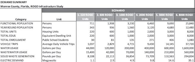 TischlerBise, a consulting firm based in Bethesda, Maryland, was retained by Monroe County to evaluate the potential infrastructure effects of different scenarios for residential development. The report, which was presented to county commissioners during a Dec. 11 meeting in Key Largo, examined the demands based on the county commission’s request for at least 220 additional building rights from the state – the maximum number that could be added to the county while preserving the legallyrequired 24-hour evacuation for permanent residents, according to current models.