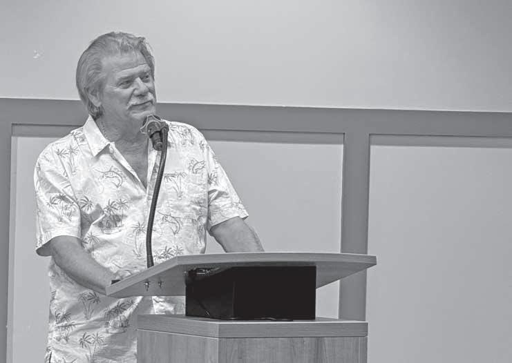 Randy Mearns, one of Marathon’s founding councilmen, honors the legacy of recentlydeceased councilman Frank Greenman at the council’s Dec. 10 session. Greenman will be honored with a memorial day of civic service and music appreciation each November. ALEX RICKERT/Keys Weekly