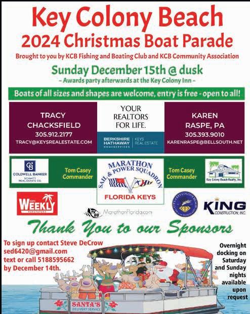 Two of Marathon’s biggest holiday happenings are set to take place on the same day this weekend, as the city’s first-ever SantaCon during the daylight hours gives way to the Pigeon Key Holiday Spectacular at night. See page 6. ALEX RICKERT/ Keys Weekly