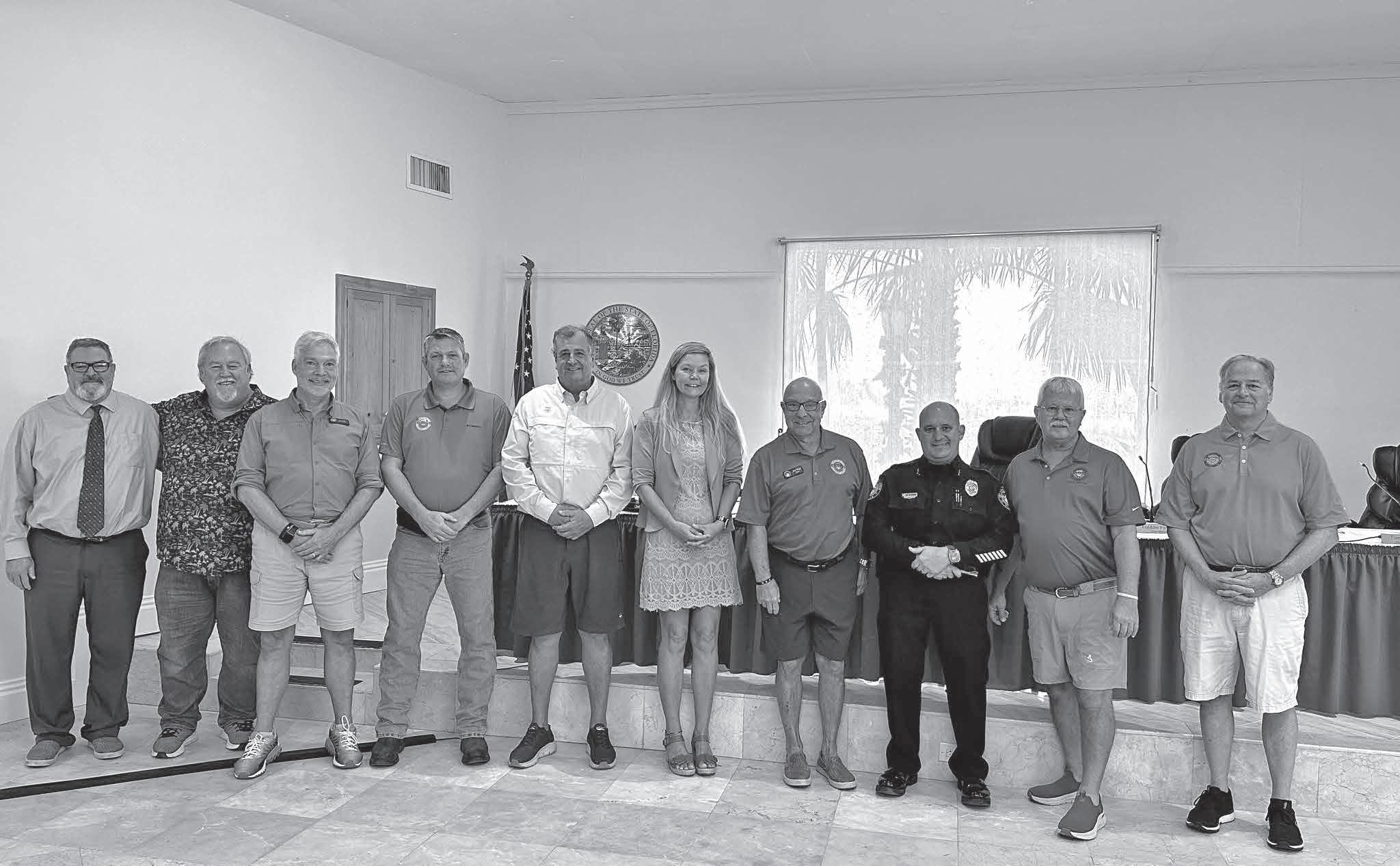 The Key Colony Beach City Commission and police department hold a signing ceremony with South Florida Police Benevolent Association president Steadman Stahl and attorney Andrew Axelrad to commemorate the city’s newly-approved police union contract. ALEX RICKERT/Keys Weekly