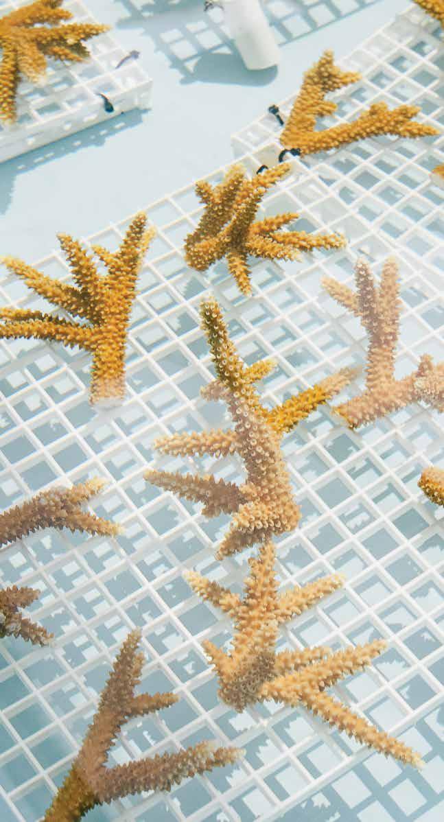 A f te r n e ar ly th ree mo n t hs o f s up p o r ti ve ca re to hel p the c o ra l s re c ove r, M o te’s ex pe r t c o ra l reef resto rati o n resea rch e rs bega n t h e mu l ti step p ro c ess of rei nt rodu ci ng t h o u sands o f h ea l t hy, re ha bili tated co rals back in to our unde r water nurser ies M ore than 11,000 co ra ls h ave since been returned and placed into the pipeline for restoratio n o utpl anting