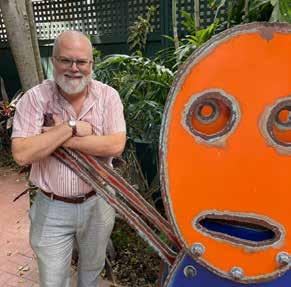 Jed Dodds displays a piece by renowned local sculptor John Martini on the grounds of The Studios’ PEAR House haven for visiting artists.
