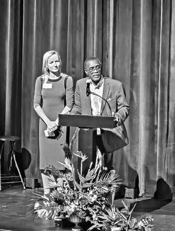 Holly Raschein, county commissioner, and Jonathan Gueverra, president of College of the Florida Keys, welcome more than 200 people to a Feb. 25 tourism workshop. MANDY MILES/Keys Weekly