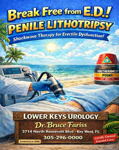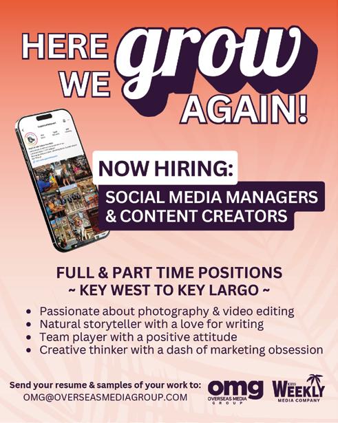 THE KEY WEST WEEKLY (ISSN 1944-0812) IS PUBLISHED WEEKLY FOR $125 PER YEAR BY WEEKLY NEWSPAPERS, INC., 9709 OVERSEAS HIGHWAY, MARATHON FL 33050. APPLICATION TO MAIL AT PERIODICALS POSTAGE RATES IS PENDING AT FORT LAUDERDALE FL AND ADDITIONAL MAILING OFFICES.