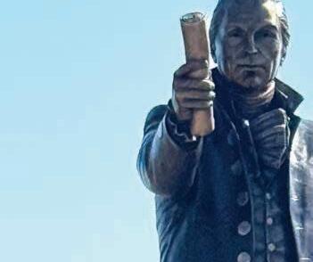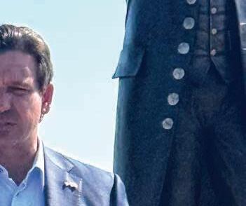 1. Gov. Ron DeSantis poses with the freshly-unveiled statue of James Monroe – one of several placed around the state of Florida in counties named after Founding Fathers.