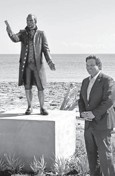 Florida Gov. Ron DeSantis speaks at the unveiling of a new statue of president James Monroe near the Bahia Honda Bridge on Feb. 16. See page 6. ALEX RICKERT/ Keys Weekly