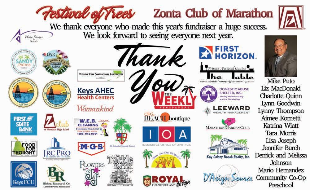 Se habla español THE MARATHON WEEKLY (ISSN 1944-0812) IS PUBLISHED WEEKLY FOR $125 PER YEAR BY WEEKLY NEWSPAPERS, INC., 9709 OVERSEAS HIGHWAY, MARATHON FL 33050. APPLICATION TO MAIL AT PERIODICALS POSTAGE RATES IS PENDING AT FORT LAUDERDALE FL AND ADDITIONAL MAILING OFFICES.