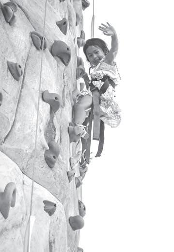 4. Angel Loeung climbs the wall for her chance at $50.