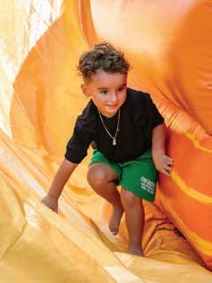 16. Milan Morales takes his turn on the rocket slide.