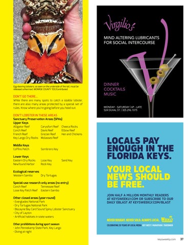 MIND ALTERING LUBRICANTS FOR SOCIAL INTERCOURSE DINNER COCKTAILS MUSIC MONDAY - SATURDAY | 6P - LATE 524 DUVAL ST. | 305.296.1075 NEVER BOUGHT. NEVER SOLD. ALWAYS LOCAL. LOCALS PAY ENOUGH IN THE FLORIDA KEYS. YOUR LOCAL NEWS SHOULD BE FREE. JOIN HALF A MILLION MONTHLY READERS AT KEYSWEEKLY.COM OR SUBSCRIBE TO OUR DAILY EBLAST AT KEYSWEEKLY.COM/BLAST CELEBRATING 20 YEARS OF LOCAL MEDIA KEY WEST | MARATHON | TAVERNIER
