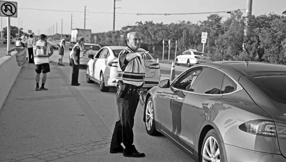Two Florida Highway Patrol vehicles guide an ambulance through a congested U.S. 1 at MM 95 in Key Largo on Feb. 25. Using a loudspeaker, troopers could be heard far from the road in a nearby neighborhood telling motorists to move and make room for the emergency vehicle. DOUG FINGER/Keys Weekly