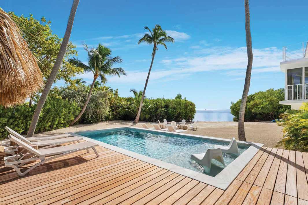 This breathtaking three-story beachfront home boasts six spacious bedrooms, five lavish bathrooms, and three living rooms, perfectly blending resort-style living with the utmost comfort. Located in a serene cove with a pristine natural beach, the home features floor-to-ceiling windows that offer stunning 180-degree panoramic views of the ocean. Every corner is meticulously designed with tasteful decor, exuding elegance while providing a personal, comfortable atmosphere. The property is in downtown Islamorada, Florida Keys, and includes a private beachfront terrace, a third-story private balcony, and a tranquil pool with a tiki hut, making it ideal for relaxation and entertaining. The outdoor spaces feature a cozy firepit, offering the perfect setting for intimate gatherings with the sound of the waves as a backdrop. As a vacation rental, this residence is a lucrative investment opportunity in a highly sought-after area. This home is a true masterpiece, offering unparalleled luxury, privacy and breathtaking views.