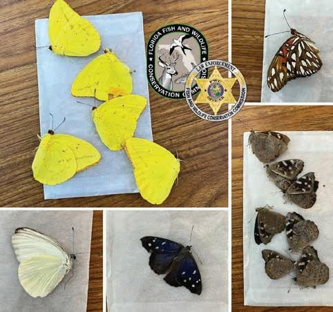 park and leaving the area in a truck bearing Washington State tags. FWC and FWS officers quickly responded and found the vehicle. An FWC officer conducted a traffic stop and discovered Norman in possession of 15 deceased butterflies, each individually stored in small envelopes. The butterflies were identified as Julias, Great Southern White (Ascia monuste) and Florida Purplewing (Funica tatila).