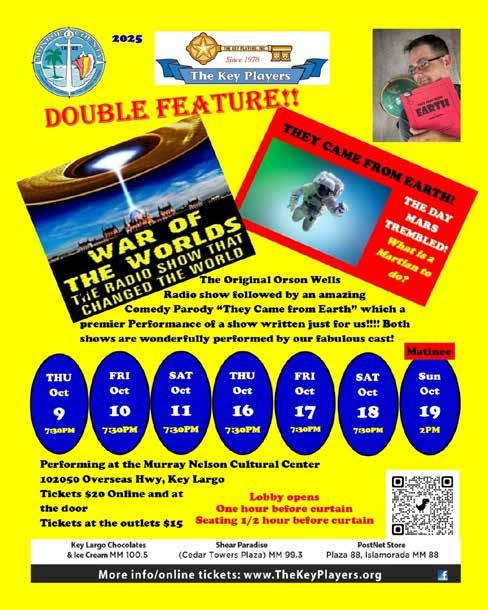 The “War of the Worlds/They Came from Earth” double feature opens on Thursday, Oct. 9 at 7:30 p.m. at the Murray Nelson Cultural Center in Key Largo at MM 102. There will be a total of seven performances.