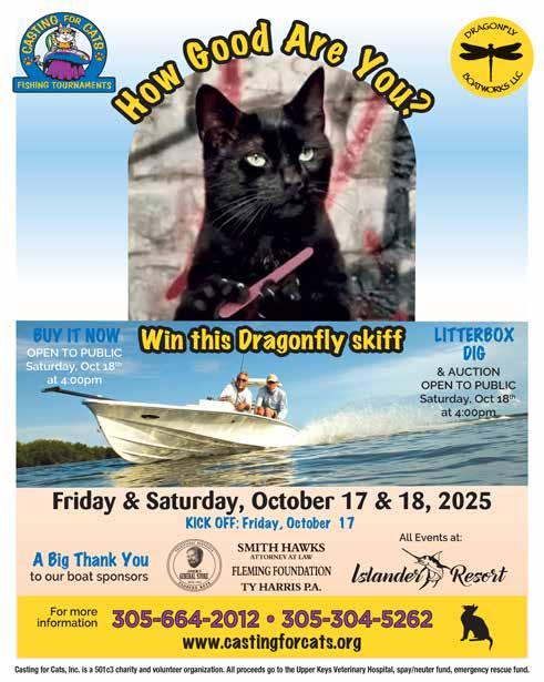 A kickoff party and sign-in is set for Friday, Oct. 17 from 6 to 9 p.m. at the Islander Resort, located at MM 82.1, oceanside, in Islamorada. Lastminute registration will go from 6 to 7:45 p.m., and a review of the rules will take place at 7:15 p.m. Anglers can compete in bait, artificial and fly divisions.