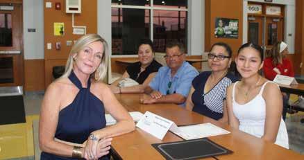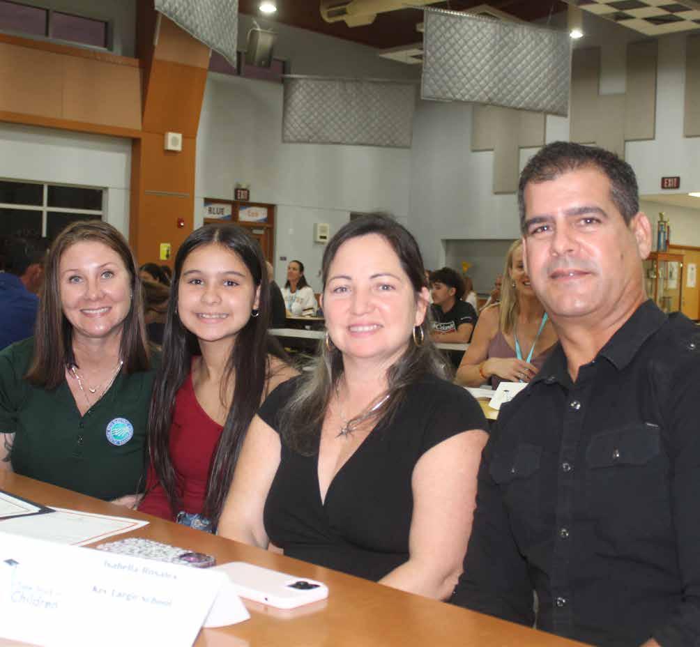 Take Stock in Children mentor Ashley Arrabal, left, with Key Largo School student Isabella Rosales and parents during a contract signing on Oct. 28 at Key Largo School. JIM McCARTHY/Keys Weekly