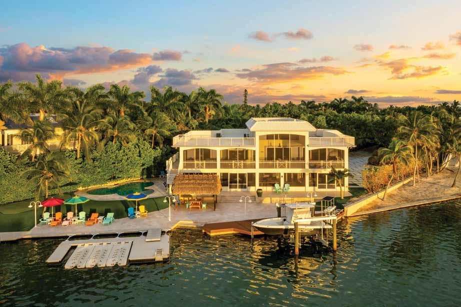Commanding 170 feet of private Florida Bay frontage and situated on over an acre of precious Islamorada land, Eagle Point is a contemporary coastal estate that captures the essence of refined waterfront living. Designed for both serenity and sophistication, the residence blends clean architectural lines with the natural beauty of its tropical surroundings. Gated and beautifully landscaped, the property opens to sweeping open-water vistas framed by swaying palms and a fruit tree orchard upon your entrance. Expansive glass walls flood the interiors with natural light, connecting elegant living and dining spaces to the outdoors, providing vast screened porches both upstairs and down. The kitchen anchors the home with gorgeous views and a function ideal for entertaining or quiet evenings at home. A downstairs flex room and private gym add versatility and wellness to daily life, while multiple rooftop terraces invite sunset gatherings and panoramic bay views. Outside, the resort-inspired amenities continue with a lagoon-style pool, putting green, and ample deepwater dockage with a boat lift with Bay to Ocean access in minutes via Channels 2 or 5, offering effortless access to world-class boating and fishing. Just off the edge of the channel lies a rare bayside reef teeming with life and providing snorkeling right off your own dock. Located on the Lower Matecumbe island of Islamorada, Eagle Point balances modern coastal luxury with timeless island tranquility—an estate designed for those who seek both beauty and belonging by the water.