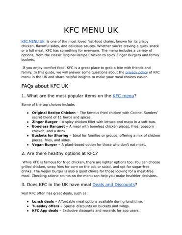 If you enjoy comfort food, KFC is a great place to grab a bite with friends and family. In this guide, we will answer some questions about the privacy policy of KFC menu in the UK and share helpful insights to make your meal choices easier.