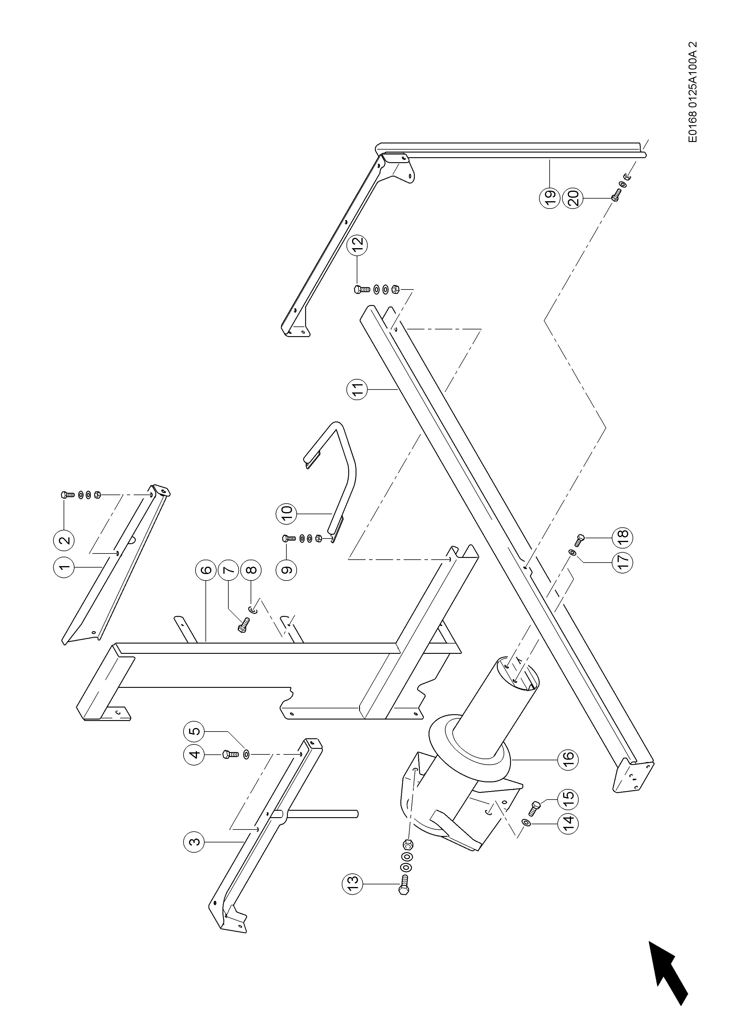 Pos. Part No. Description Dimension Quanti ty Conditions 1 00 0794 841 3 FASTENER 1420 1 2 00 0237 370 0 HEXAGON HEAD BOLT M8X30 2 2 00 0239 387 0 CONTACT WASHER A8-8,2X18X1,4 4 2 00 0236 170 0 HEXAGONAL NUT M8 2 3 00 0794 939 1 SUPPORT 688,5X164X109,8 1 2) 3 00 0794 936 2 SUPPORT 1420 / 600LTR. 1 3) 4 00 0237 453 0 HEXAGON HEAD BOLT M10X30 2 5 00 0239 388 0 CONTACT WASHER A10-10,2X22,25X1,6 2 6 00 0794 938 3 SUPPORT 1420 1 7 00 0237 453 0 HEXAGON HEAD BOLT M10X30 3 8 00 0239 388 0 CONTACT WASHER A10-10,2X22,25X1,6 3 9 00 0237 453 0 HEXAGON HEAD BOLT M10X30 2 9 00 0239 388 0 CONTACT WASHER A10-10,2X22,25X1,6 4 9 00 0236 171 0 HEXAGONAL NUT M10 2 10 00 0782 676 0 REINFORCING PLATE 1 11 00 0794 855 1 SUPPORT 1 12 00 0237 453 0 HEXAGON HEAD BOLT M10X30 1 12 00 0239 388 0 CONTACT WASHER A10-10,2X22,25X1,6 2 12 00 0236 171 0 HEXAGONAL NUT M10 1 13 00 0237 461 0 HEXAGON HEAD BOLT M12X30 4 13 00 0239 389 0 CONTACT WASHER A12 8 13 00 0236 172 0 HEXAGONAL NUT M12 4 14 00 0239 388 0 CONTACT WASHER A10-10,2X22,25X1,6 1 15 00 0237 453 0 HEXAGON HEAD BOLT M10X30 1 16 00 0794 935 2 MAIN FRAME 1420 1 17 00 0239 387 0 CONTACT WASHER A8-8,2X18X1,4 2 18 00 0237 439 0 HEXAGON HEAD BOLT M8X16 2 19 00 0794 937 2 SUPPORT 1420 1 20 00 0237 439 0 HEXAGON HEAD BOLT M8X16 3 20 00 0239 387 0 CONTACT WASHER A8-8,2X18X1,4 4 20 00 0236 170 0 HEXAGONAL NUT M8 1 1) Equipment MD_P14_0080 MD_P14_0095 MD_P14_0115 Fuel tank 800 litres Fuel tank 950 litres Fuel tank 1150 litres 2) Equipment MD_P14_0080 MD_P14_0115 Fuel tank 800 litres Fuel tank 1150 litres 3) Equipment MD_P14_0095 Fuel tank 950 litres LEXION 750-730 No. 0125100A Remark: Bracket Page 5