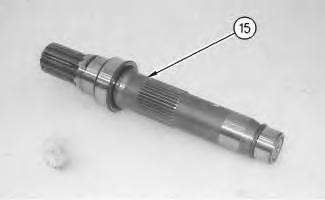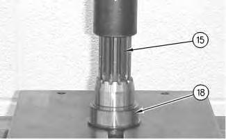 16. Install shaft (15) into a suitable press. Remove bearing race (18) from the shaft.